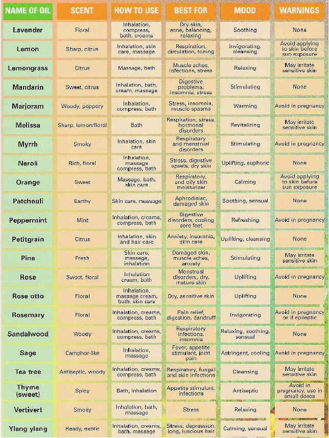 Essential Oil Use Chart - Easy Aromatherapy Recipes